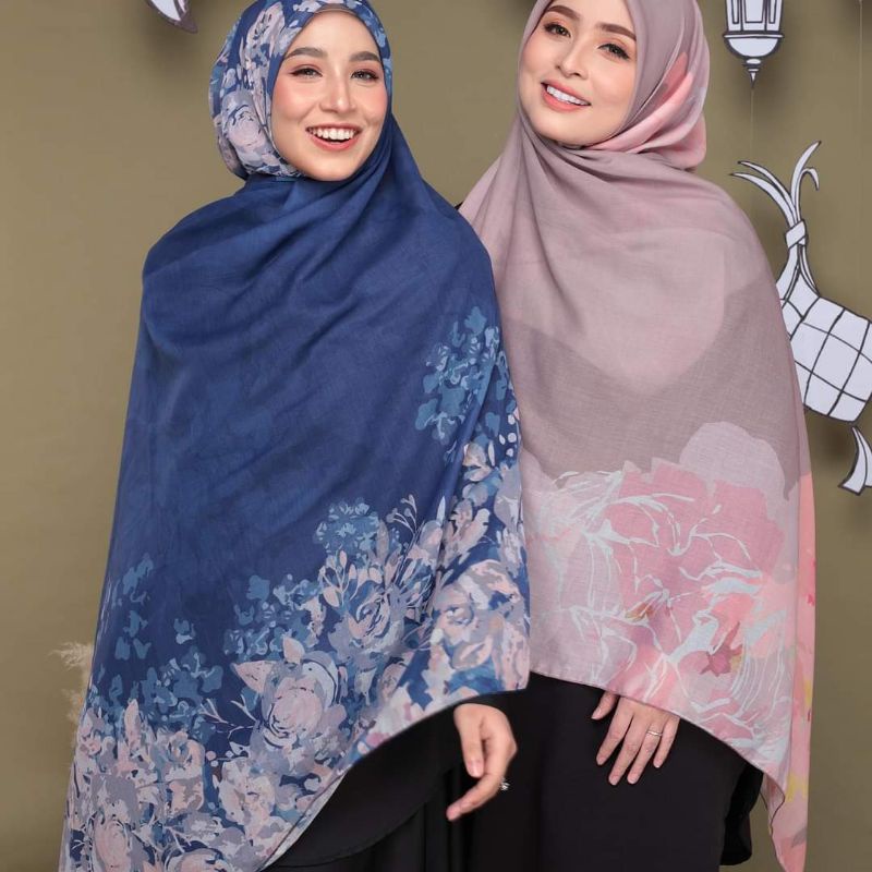 Maryam printed curved edition tudung bawal instant with soft cotton awning ( bidang 60 @ size xl labuh ) june 2022 edition.